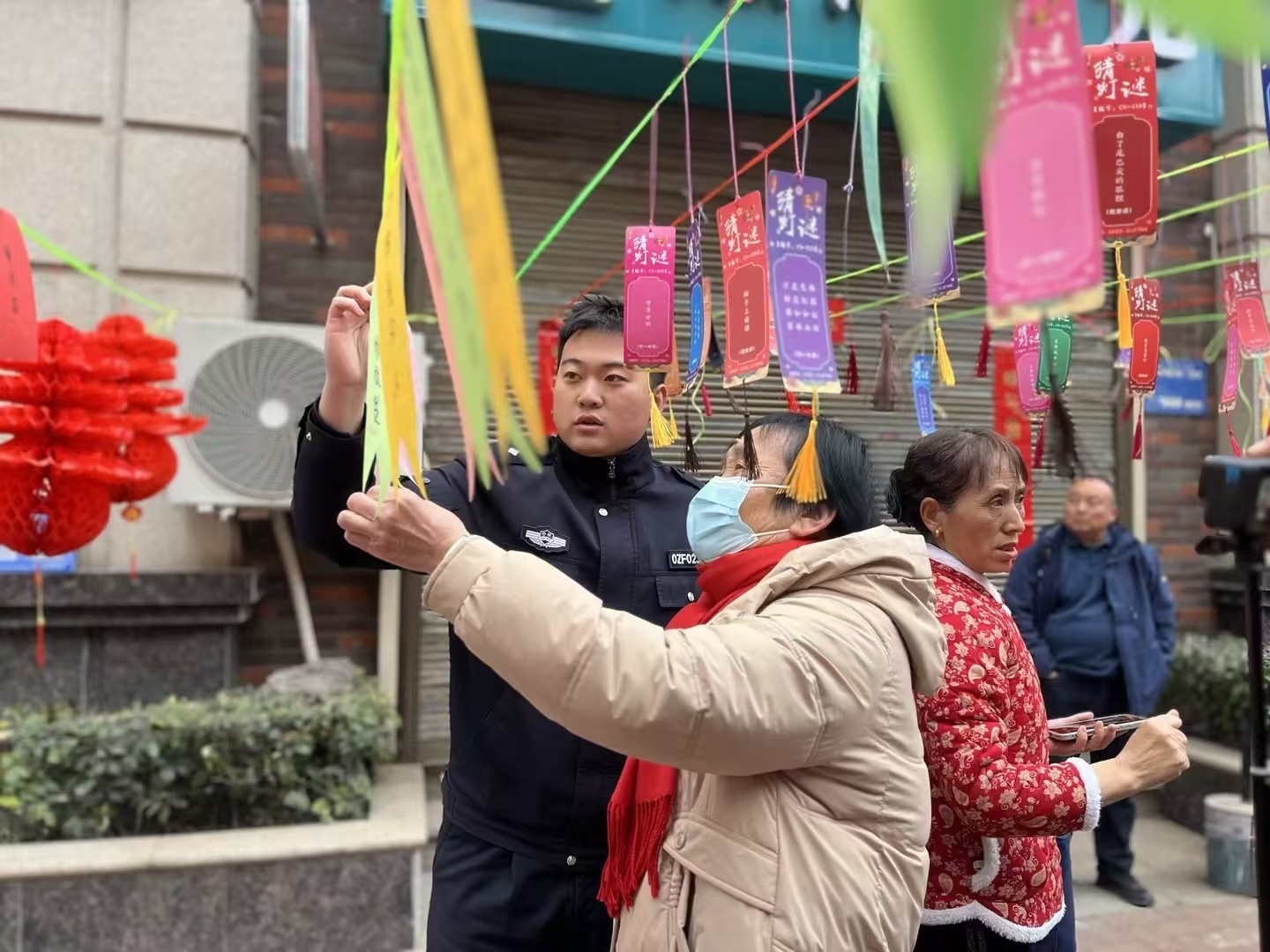 活動(dòng)現(xiàn)場(chǎng)張燈結(jié)彩,燈謎內(nèi)容豐富多樣,涵蓋了傳統(tǒng)文化、廉政、環(huán)保、垃圾分類(lèi)、移風(fēng)易俗、反詐、生活常識(shí)等多個(gè)領(lǐng)域,既有趣味性又有知識(shí)性?!懊俺淇头D(zhuǎn)賬(打一安全術(shù)語(yǔ))、網(wǎng)絡(luò)交友推薦投資(猜一詐騙類(lèi)型)”等趣味燈謎,吸引眾多居民駐足競(jìng)猜。通過(guò)“猜燈謎送平安”的形式,結(jié)合典型案例深入解析刷單返利、虛假投資等常見(jiàn)詐騙手法,讓居民在歡聲笑語(yǔ)中掌握識(shí)詐防詐技巧。在居民猜謎的同時(shí),社區(qū)法律明白人、民警手持宣傳手冊(cè),穿梭在人群中開(kāi)展“移動(dòng)課堂”。