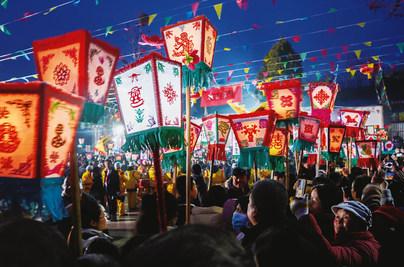 千百年來(lái),不管風(fēng)霜雨雪,這一天晚上,眾人手舉燈籠,綿延數(shù)里,一定要把蜿蜒起伏的道路照亮!