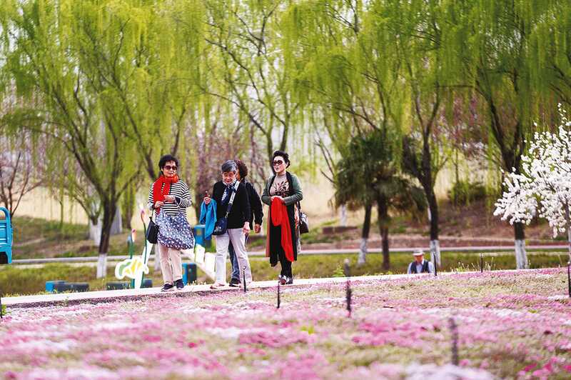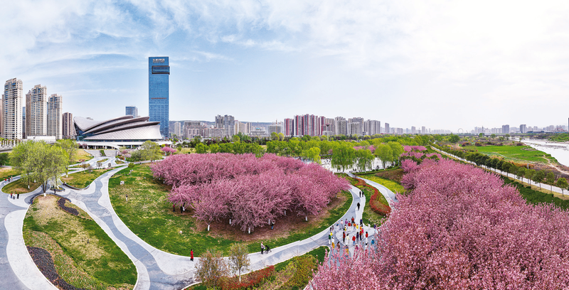 跟隨著花香的吸引探尋散落在城市中的春色,在寶雞大劇院南邊的渭河生態(tài)公園中心廣場,遠處石鼓閣與廊橋倒映于渭水之上,眼前綠柳成蔭、櫻花綻放,市民打卡拍照,孩子們在老師的帶領(lǐng)下踏青賞櫻,主動融入這幅美景之中;經(jīng)過改造提升的寶雞火車站廣場,設(shè)計別具一格,有靚麗的游園,成為游客初到寶雞時看到的最美城市名片;在金渭湖水土保持科技示范園,垂柳與海棠倒映在荷花池中,身姿迷人,這里環(huán)境清幽、景色綺麗,引得市民駐足欣賞。