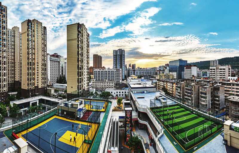 現(xiàn)代設(shè)計重構(gòu)都市生活美學(xué)。在渭濱區(qū)的文化里商業(yè)街,樓頂空間搖身變成空中運動場,強化玻璃防護墻+360°防護網(wǎng)提供安全保障,體現(xiàn)出城市空間的人文關(guān)懷與創(chuàng)新融合,讓商業(yè)活力與民生福祉共存。