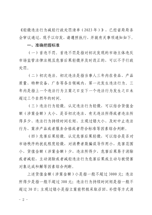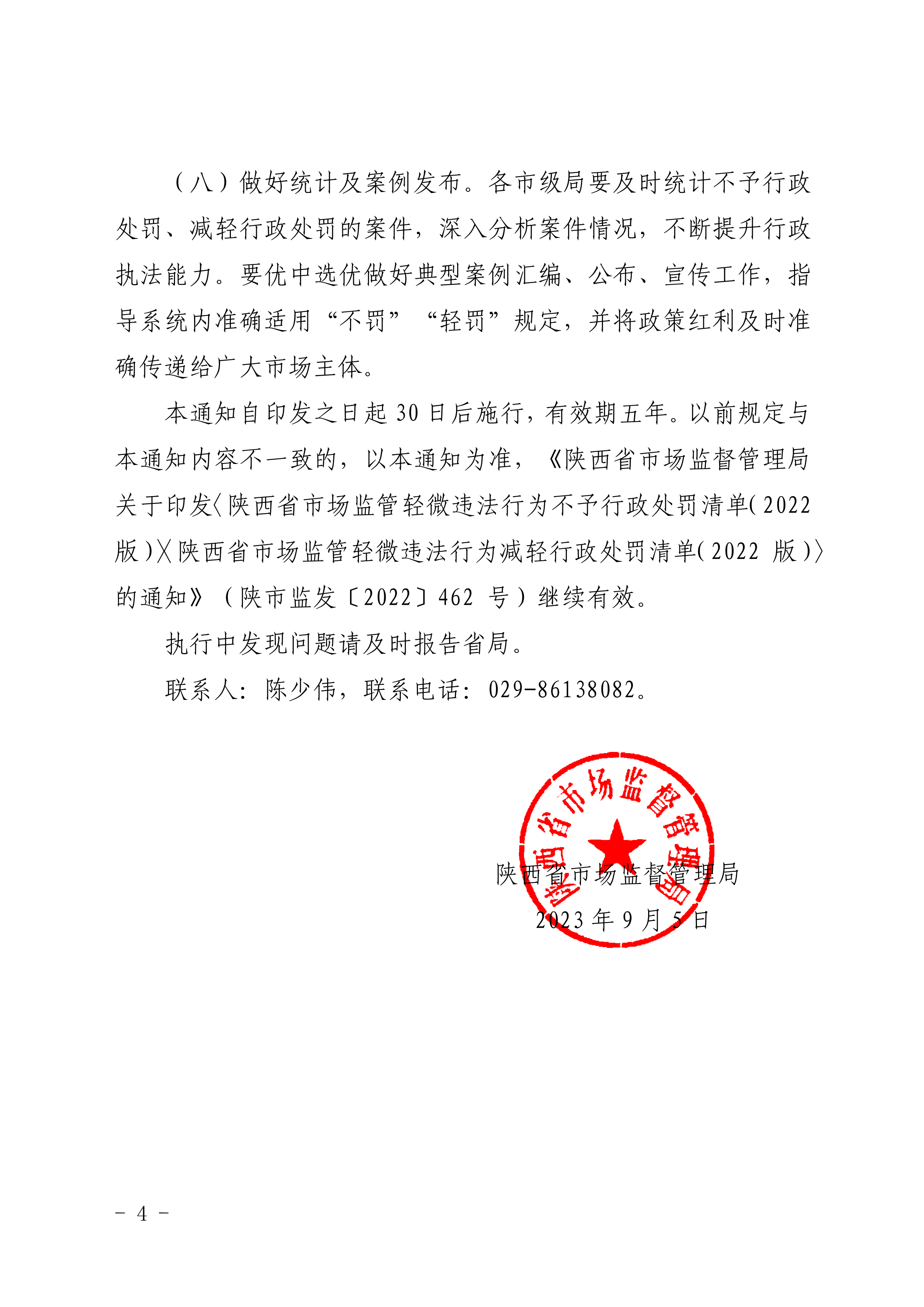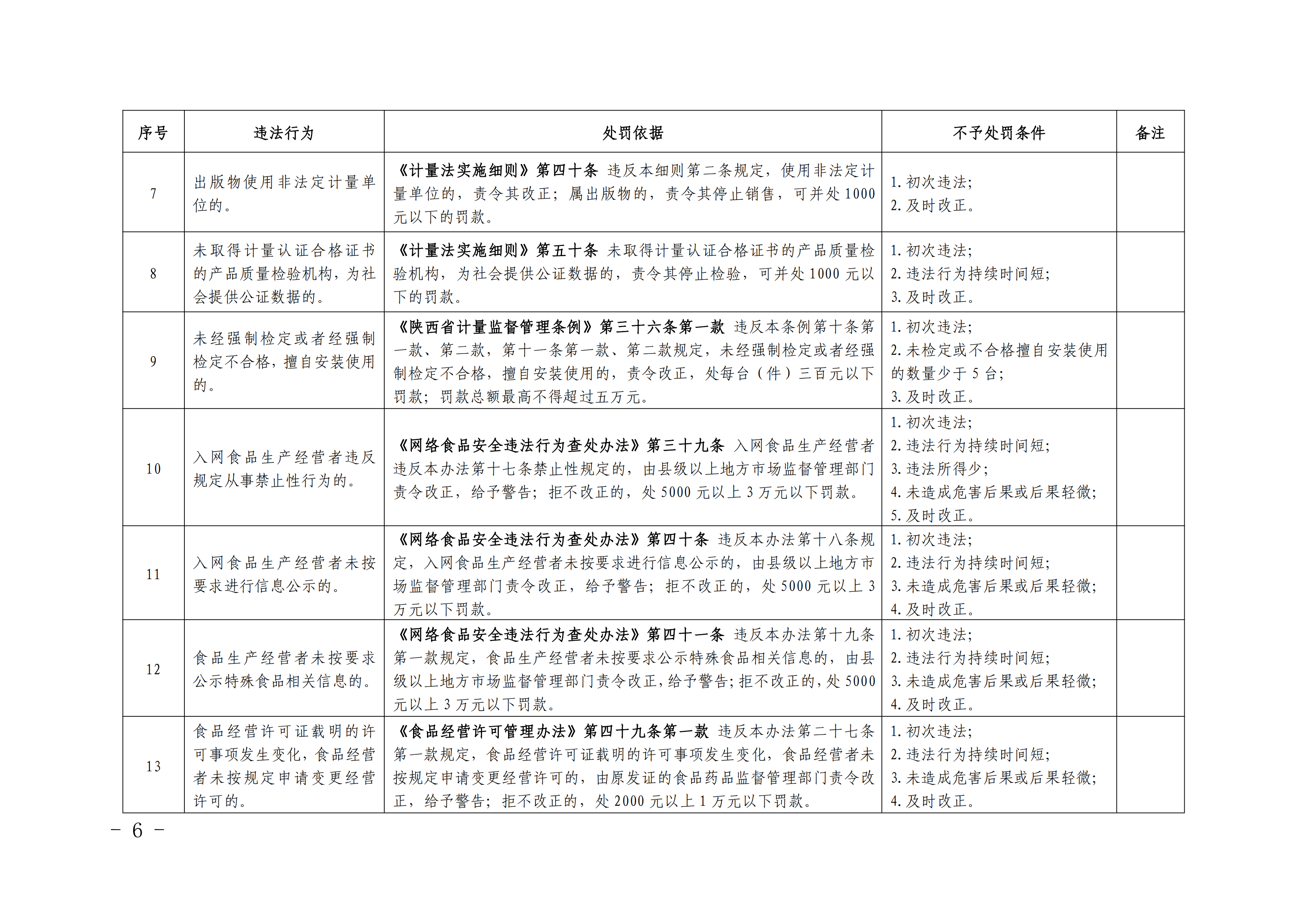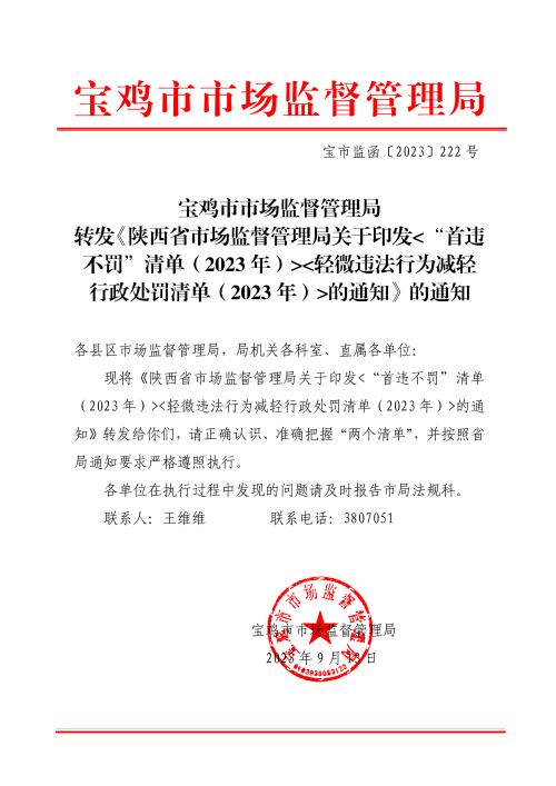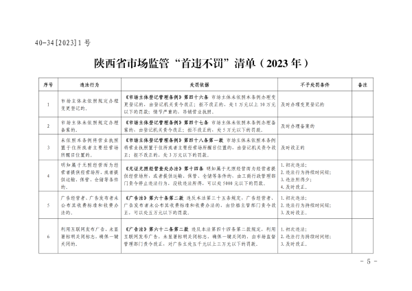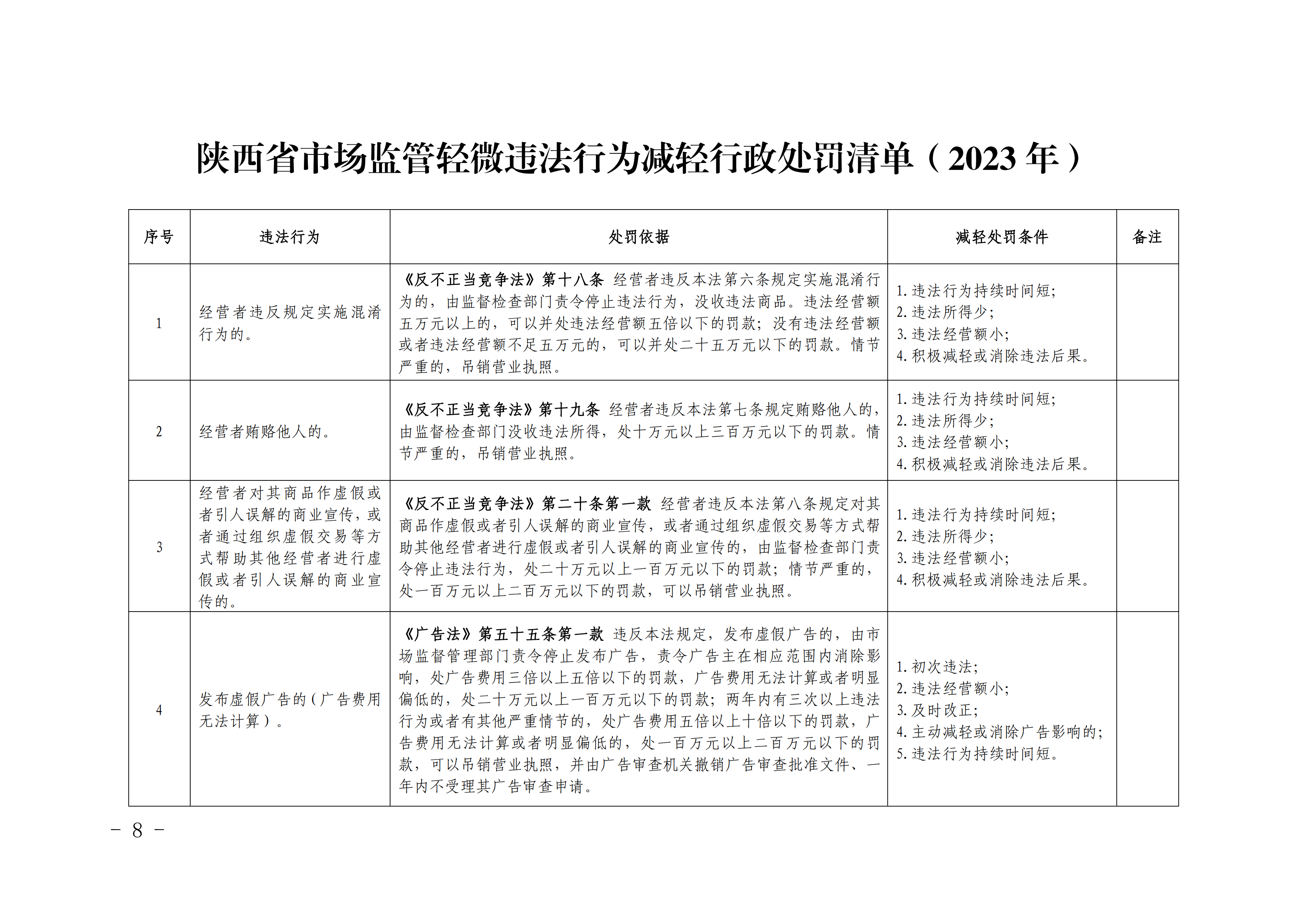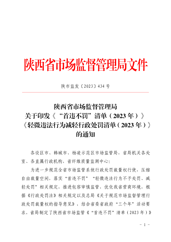 寶雞市市場(chǎng)監(jiān)督管理局 轉(zhuǎn)發(fā)《陜西省市場(chǎng)監(jiān)督管理局關(guān)于印發(fā)“首違不罰”清單(2023年)輕微違法行為減輕行政處罰清單(2023年)的通知》的通知